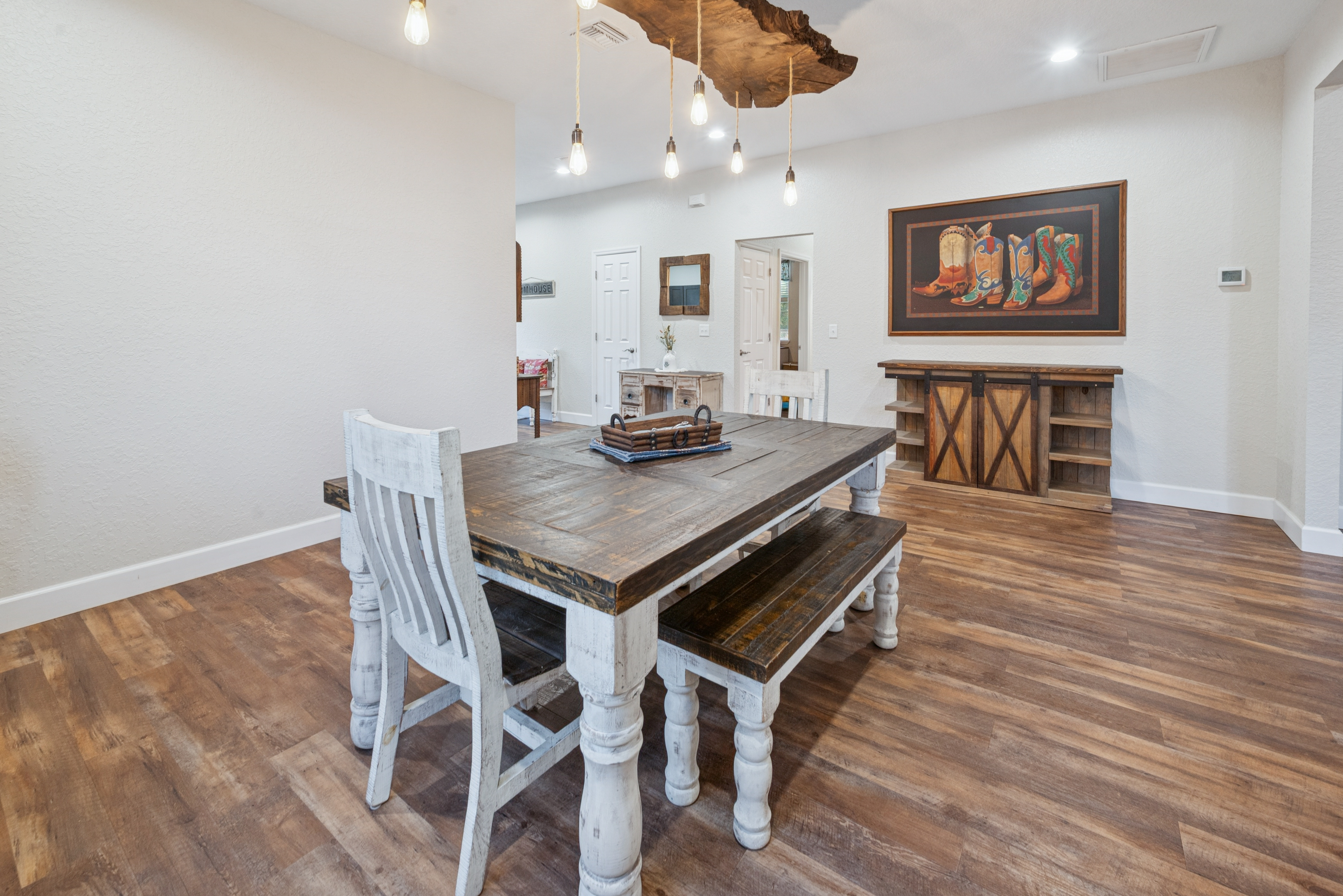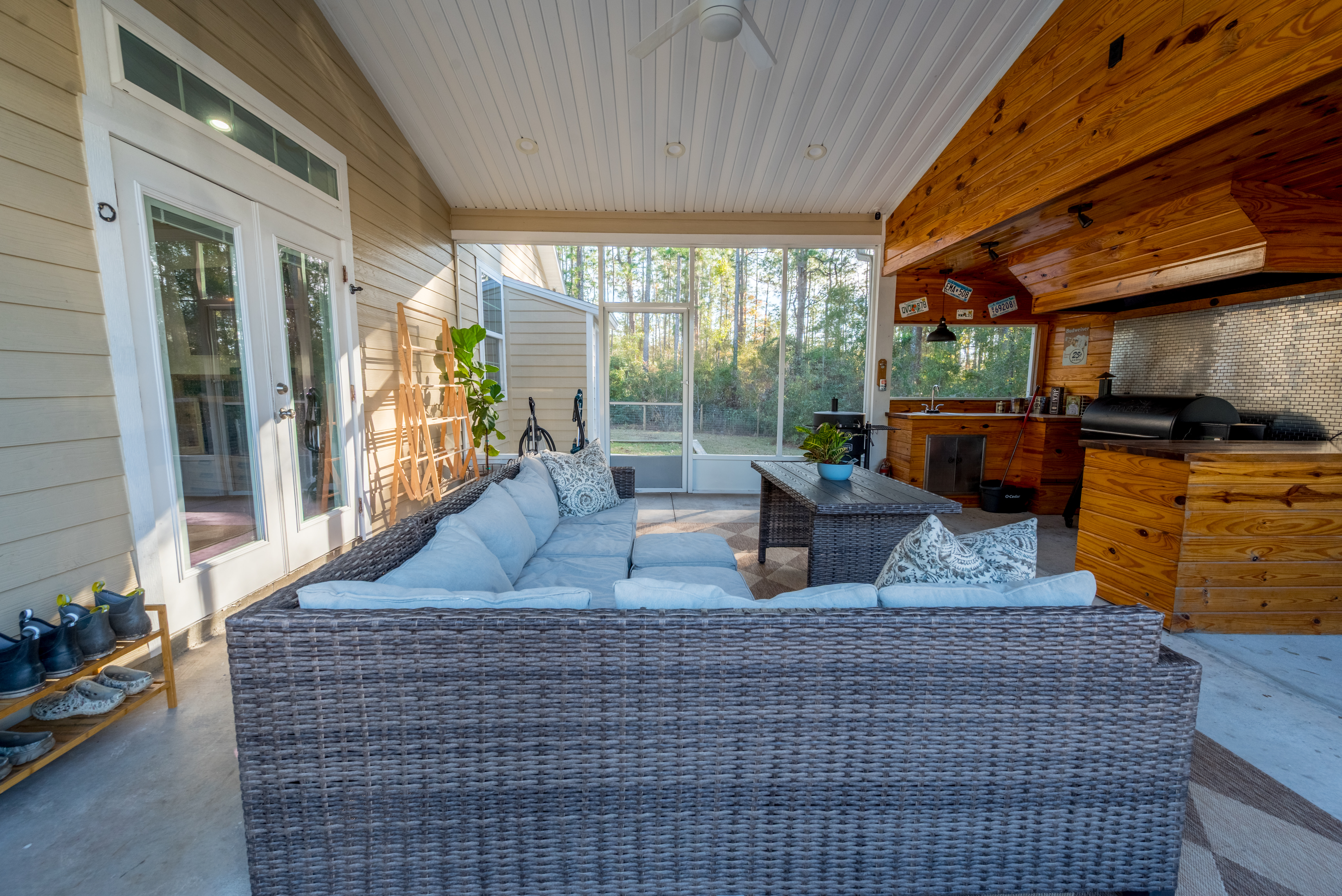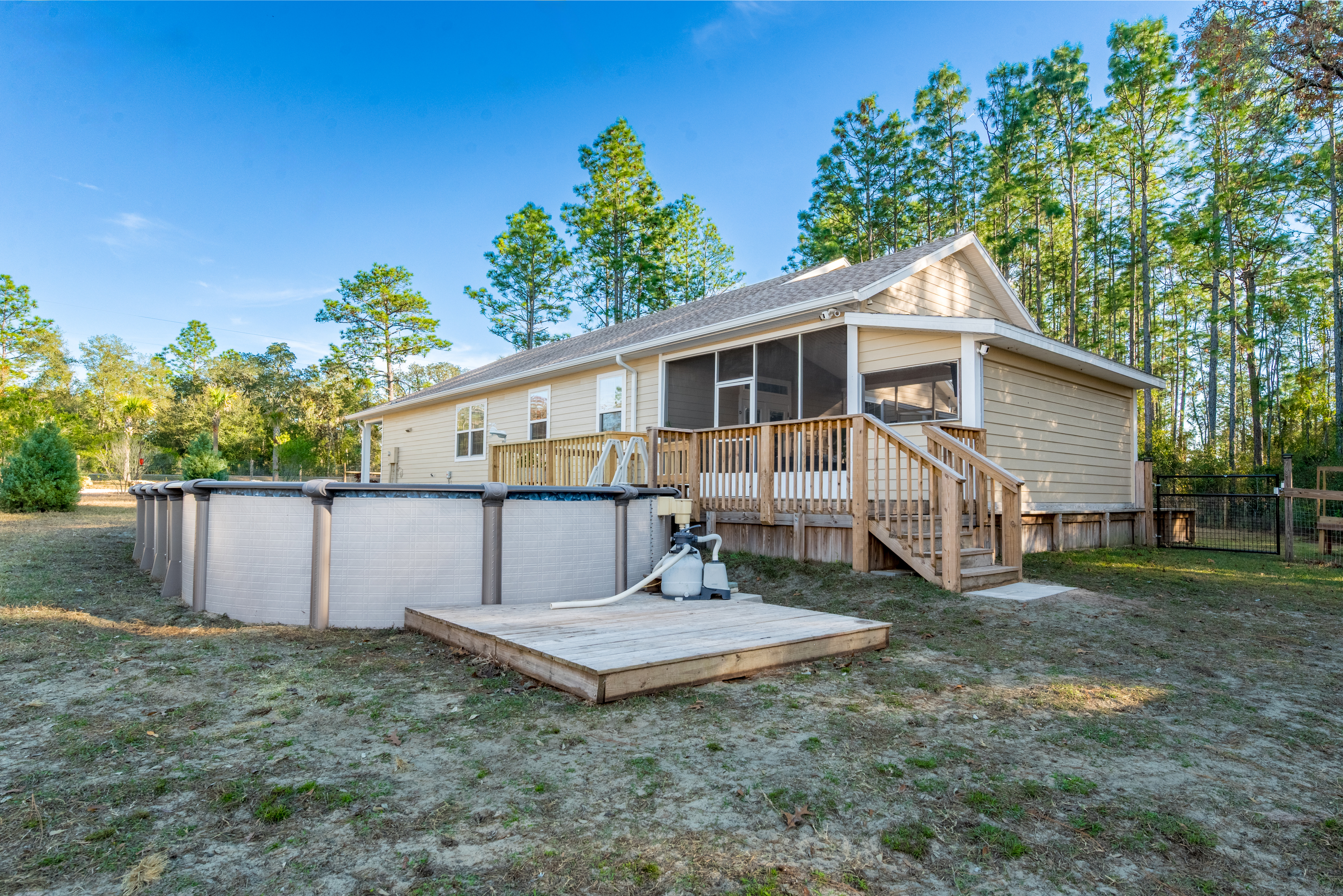 Set on 3 acres just off a paved road in Williston, this newly built home offers a comfortable layout, functional outdoor space, and room to grow. The kitchen welcomes you in with ample cabinetry, generous counter space, a pantry, and a dishwasher, all open to the dining and living areas ideal for gatherings, cooking, and daily living. The dining space features custom wood lighting and flows naturally into the living room, creating a warm and functional layout. An indoor laundry room adds everyday convenience. The primary suite features a walk-in closet, a single-sink vanity, and a walk-in shower. Out back, the screened-in patio extends the living space and includes an outdoor kitchen and its own bathroom, perfect for entertaining or relaxing outdoors. The property also includes a versatile shop setup, approximately 40’ x 60’ total, with a 24’ x 40’ fully enclosed garage and additional covered space, offering plenty of room for vehicles, storage, or hobbies. An RV hookup is also in place, adding extra flexibility. Conveniently located just minutes from downtown Williston, schools, shopping, and dining, with easy access to Bronson, Ocala, and Gainesville, this property combines space, functionality, and convenience.