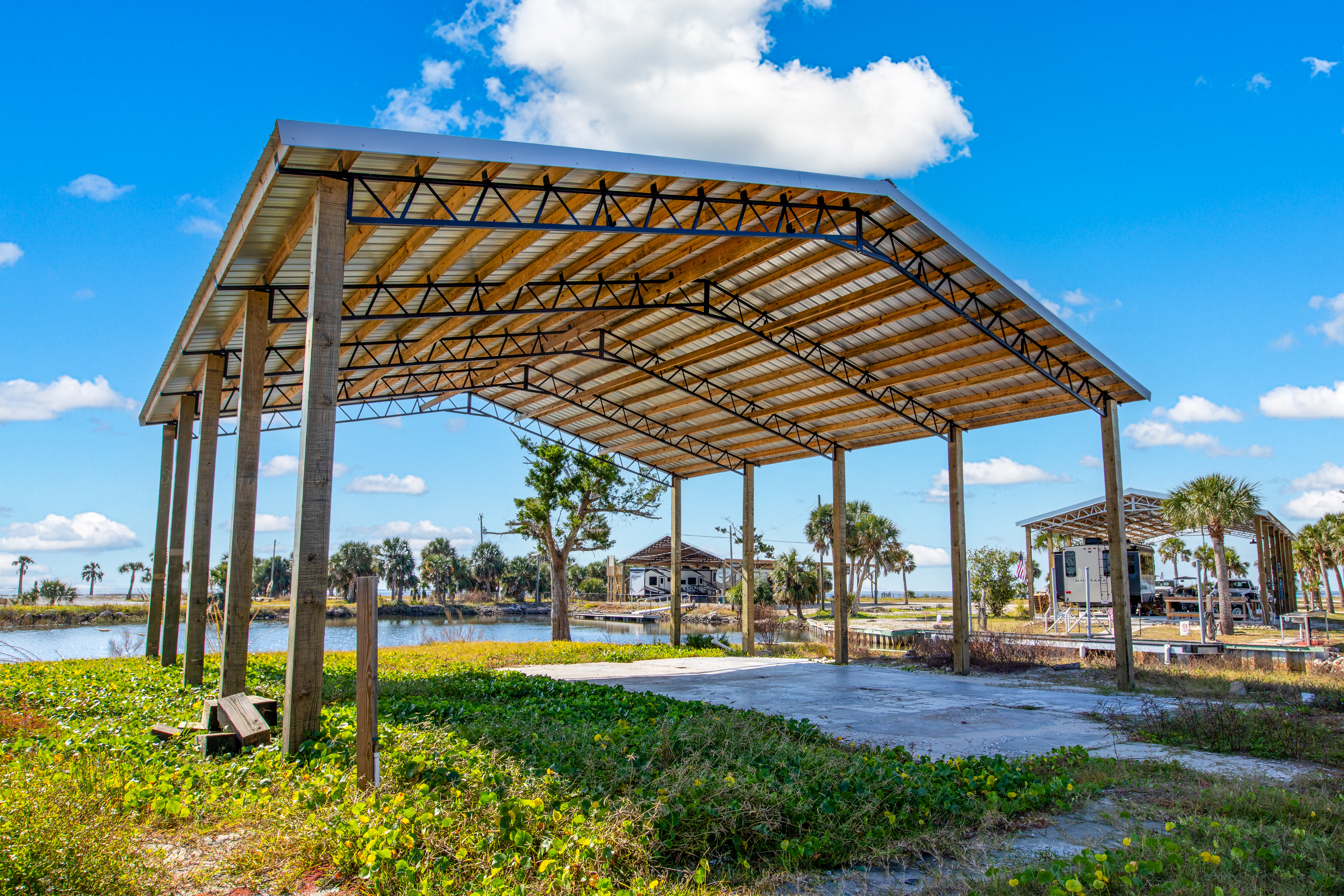 The lot is fully prepped and ready for your RV or new build, featuring valuable infrastructure often missing in coastal properties: CITY WATER, SEWER, and ELECTRIC hookups are already in place. The property also includes a brand-new 40x40 pole barn, providing secure storage for your boat, camper, or outdoor gear—making it an ideal weekend retreat or future Florida coastal home site.