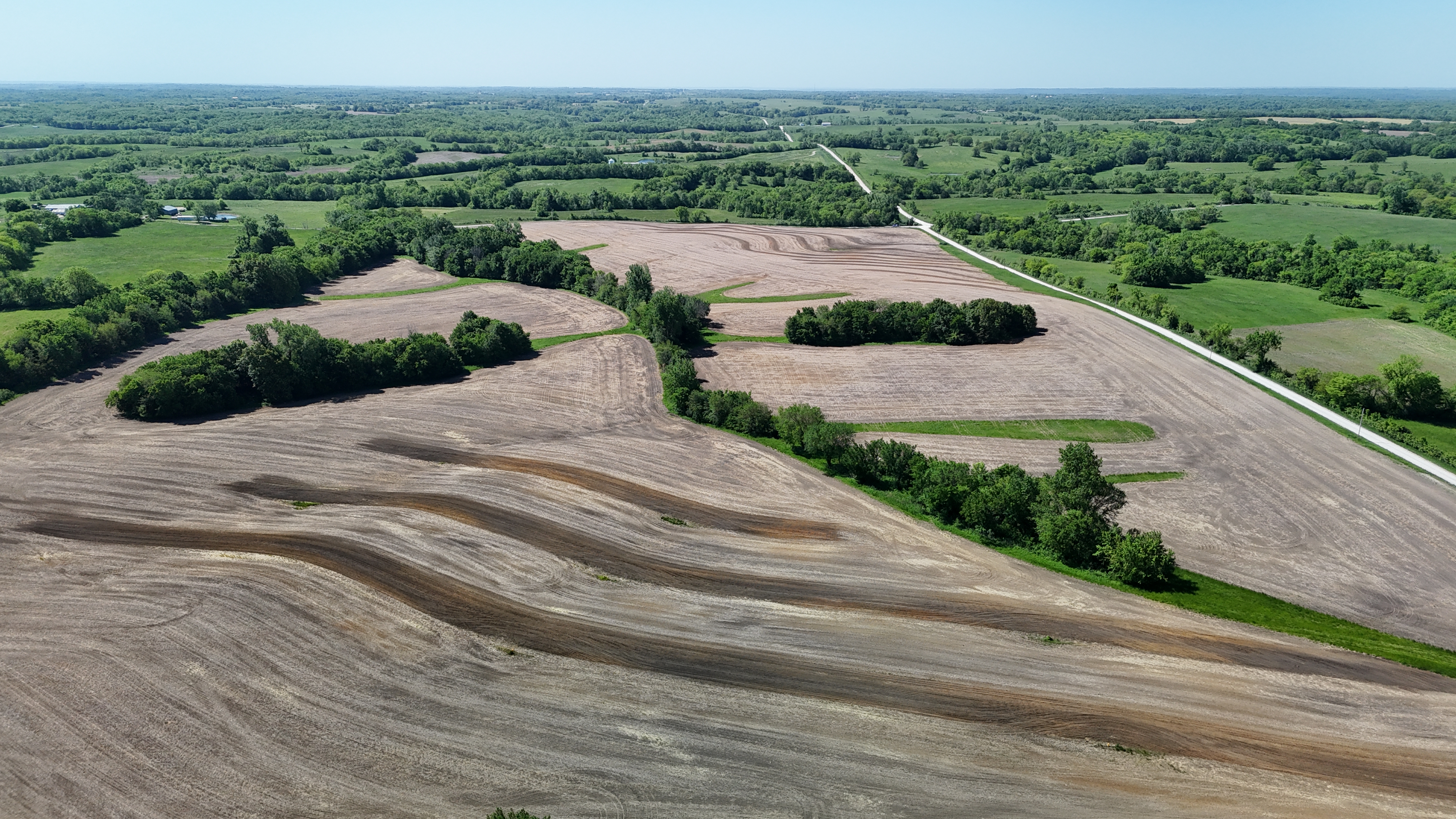 Farm offers terrace and tile work performed on the North end of farm and diversion terraces on the South. Those areas not terraced are maintained by grass waterways.