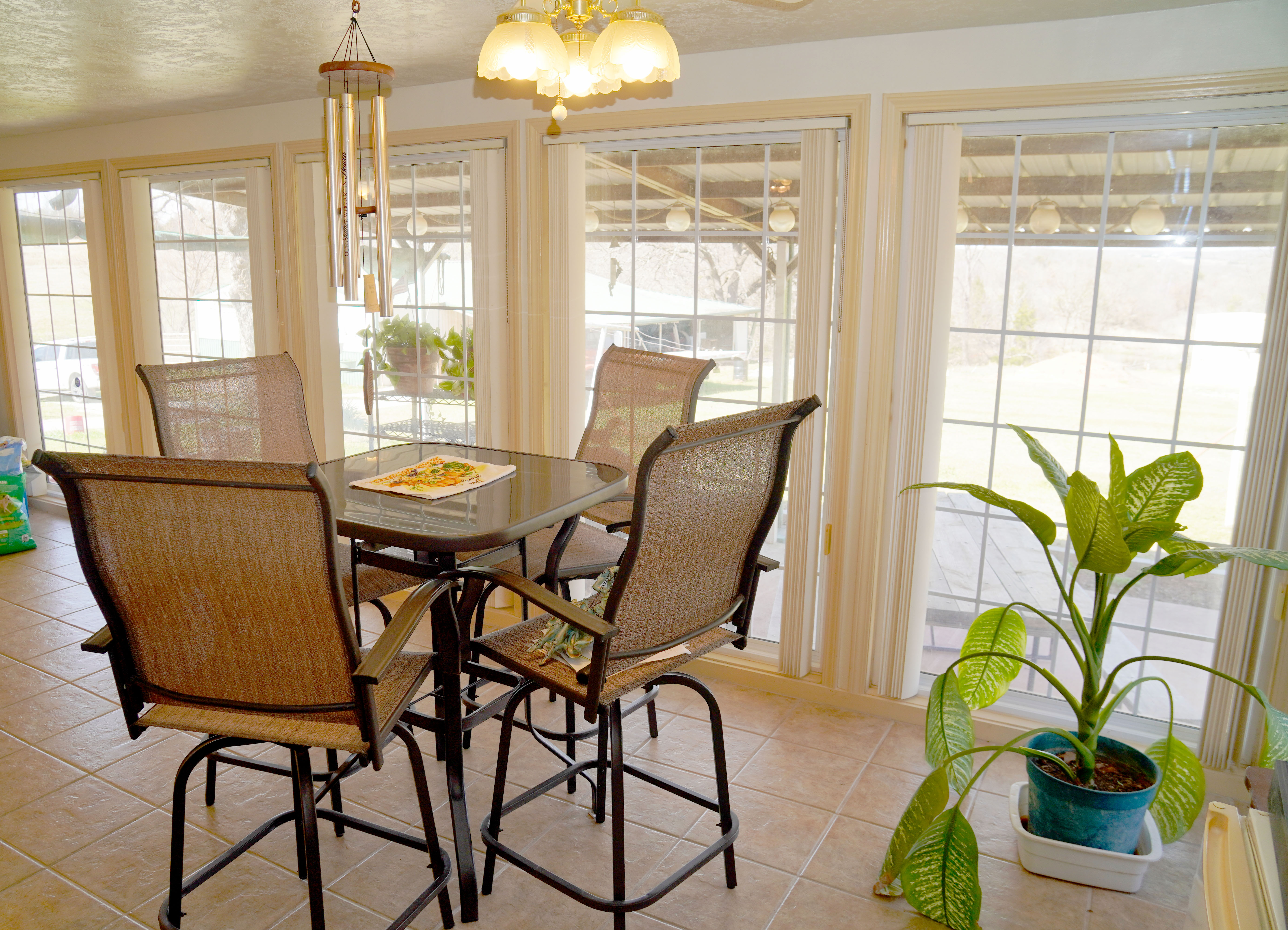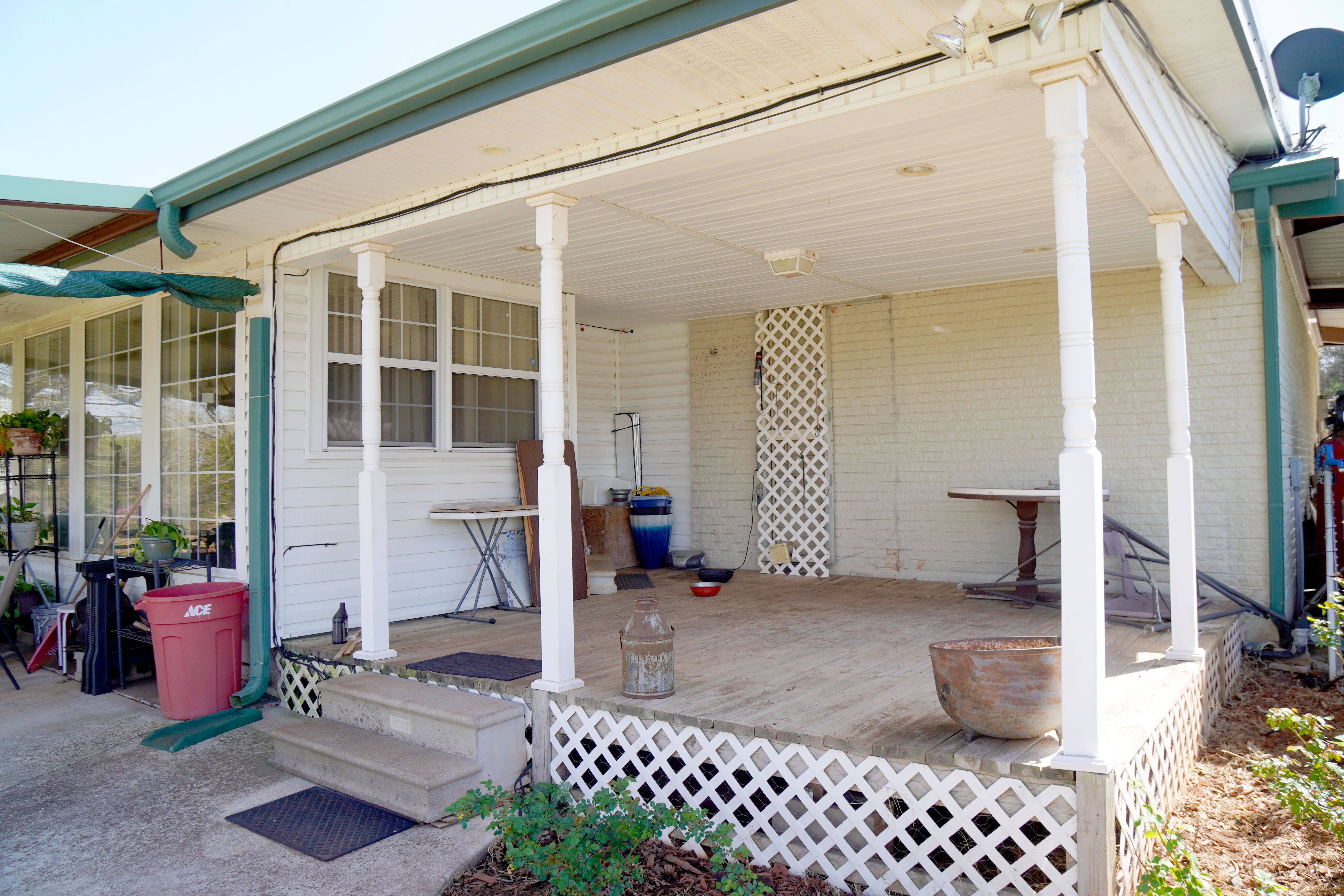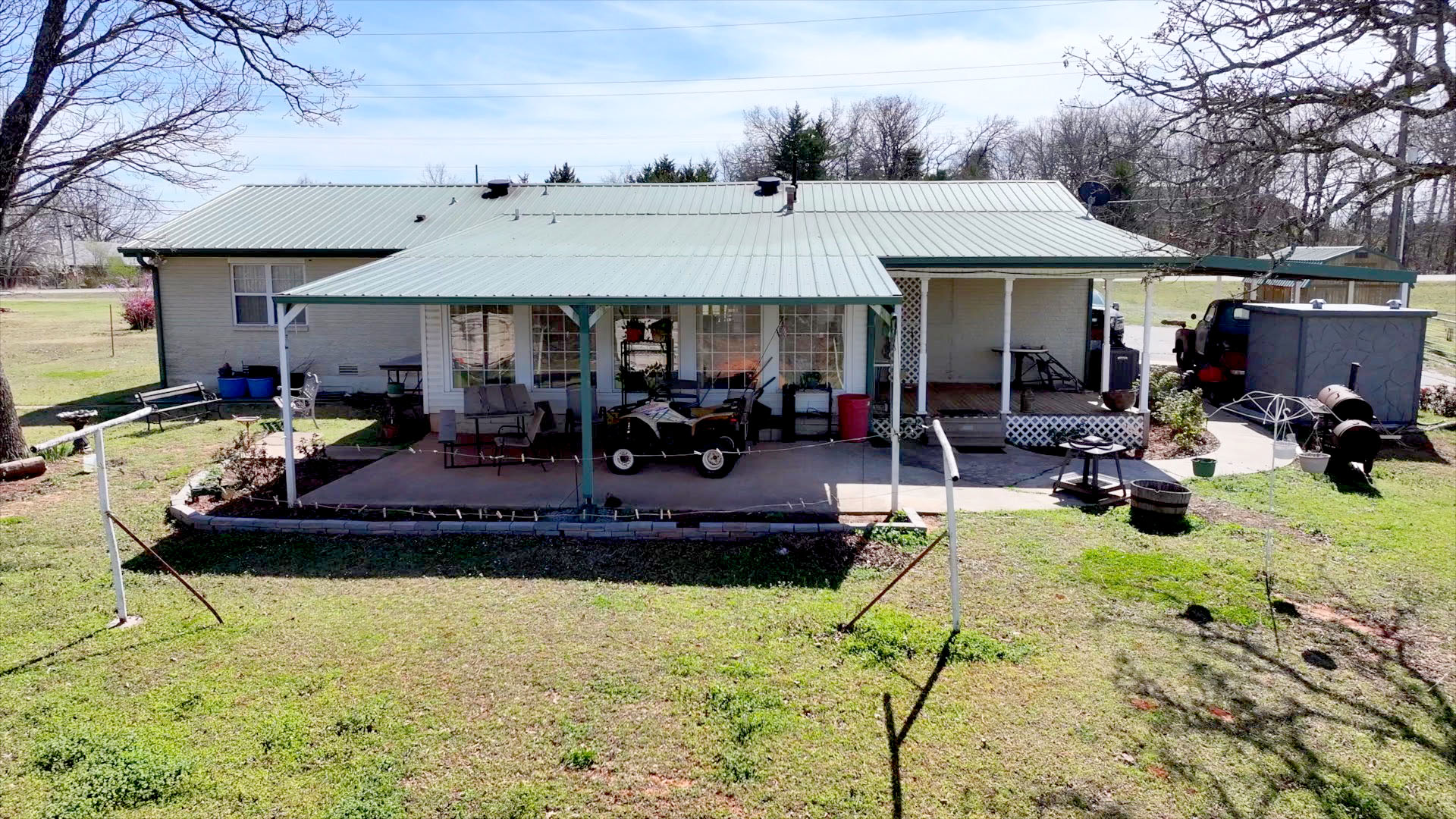 The frame home with a durable metal roof features a welcoming covered front porch, a spacious living room, and a bright sunroom that provides a relaxing place to enjoy views of the surrounding acreage. The recently remodeled kitchen includes a gas cooktop and a continuous tankless hot water heater for efficiency and convenience. The home has seen numerous updates including updated plumbing, newer windows, and updated flooring, along with new heat and air for year-round comfort. The hall bathroom features a walk-in whirlpool tub, while the primary suite offers a walk-in shower. A walk-in stand-up storm shelter adds peace of mind. Additional amenities include a covered back porch and covered patio area.