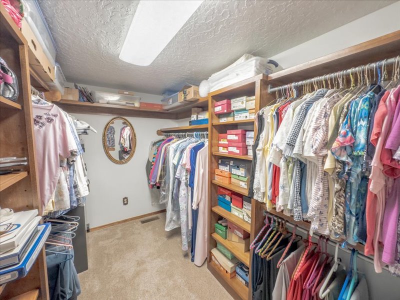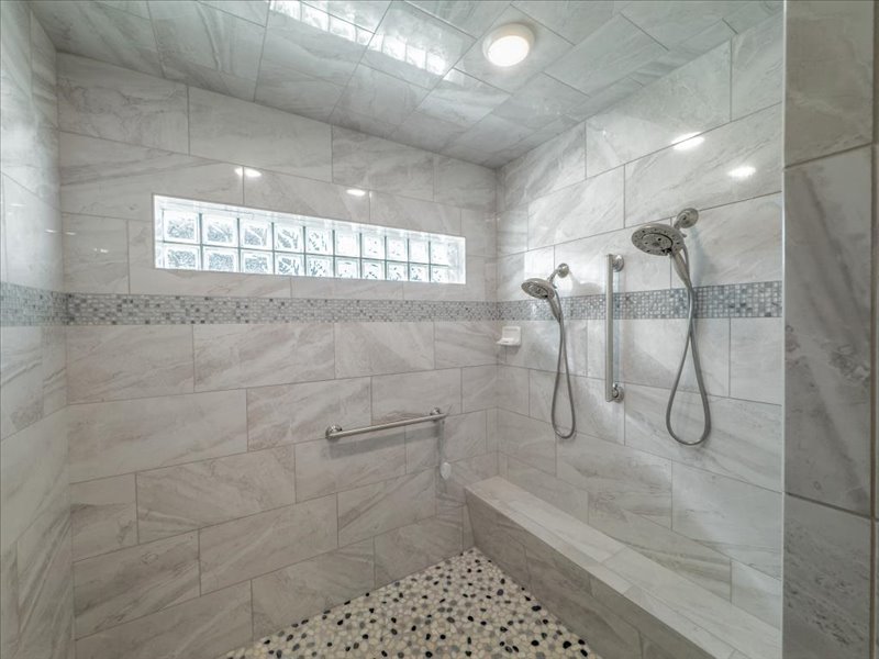 The main floor is 3,263 SF and offers 3 bedrooms and 2 1/2 baths, including a primary suite that's truly a Masterpiece! This expansive retreat easily accommodates a large bedroom suite plus a private sitting area--perfect for relaxing, watching TV, or simply enjoying the beautiful outdoor views through your stationary windows, complete with motorized blinds. No need to fight over the large vanities or closets because there is one for him and one for her, plus the gorgeous fully tiled shower. One closet doubles as a safe room to make it comfortable to weather the storms.