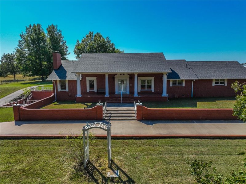 Welcome to this stunning 5,849 SF newly remodeled 1 1/2 Story brick home with basement. The property boasts 5-6 bedrooms, 4 1/2 baths with a finished walk-out basement. It is perfectly situated on 41+ acres on the edge of Stratford, Oklahoma with Highway 19 frontage. The property has two ponds and a portion of the east edge is along Spring Brook Creek. This timeless traditional and colonial-style residence combines elegance, comfort, and functionality--ideal for those seeking refined country living with room to roam.