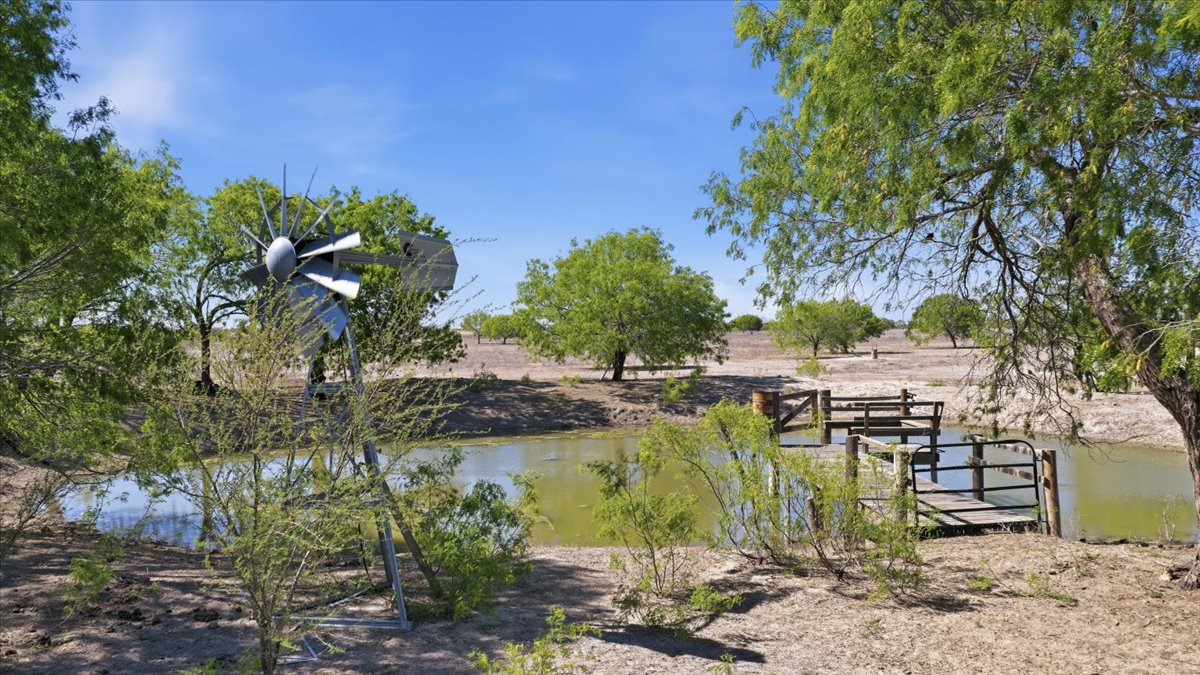 · Scenic stock tank featuring a charming wood dock and windmill-powered aeration—creating a peaceful setting that naturally attracts wildlife including dove, ducks, and other native birds, while also serving as a reliable water source for cattle