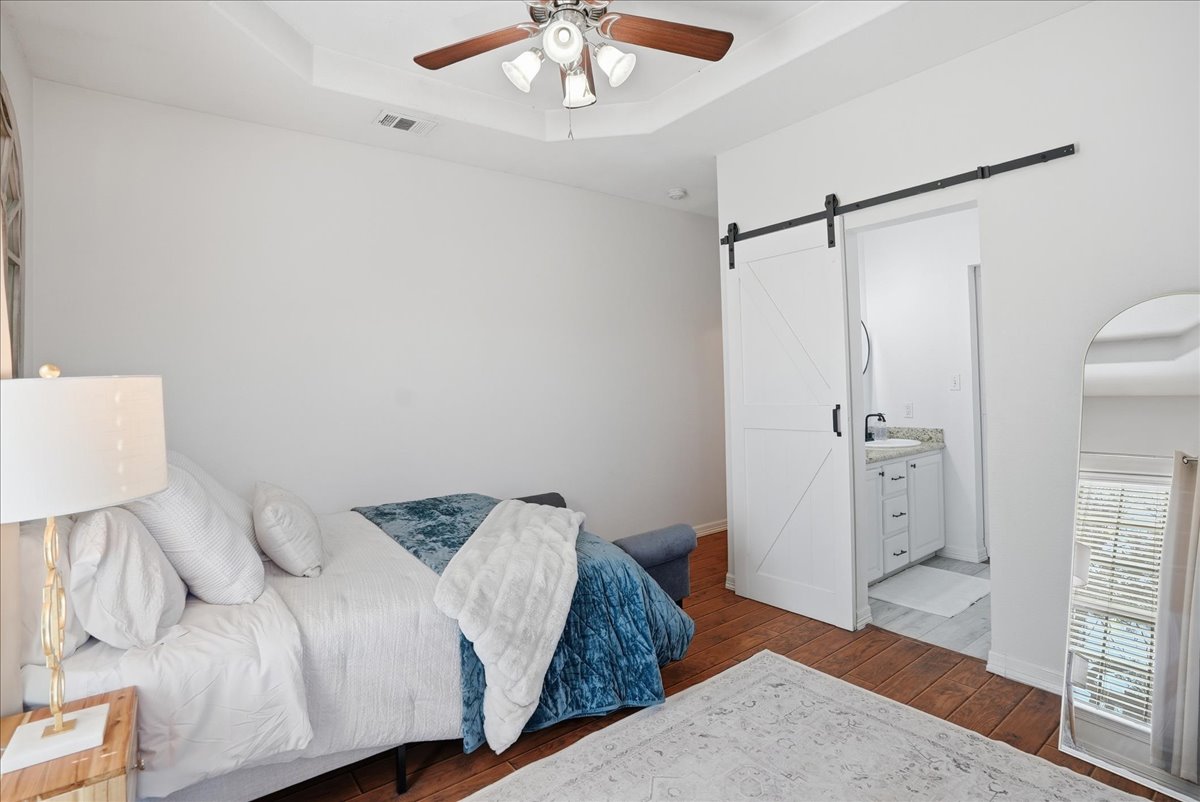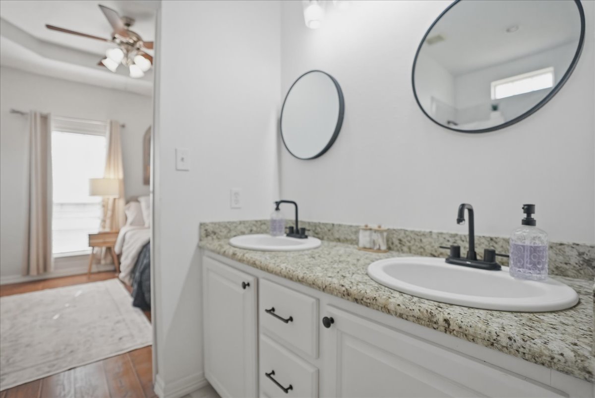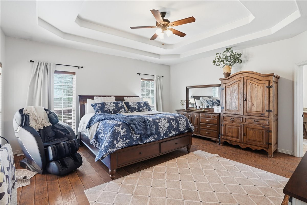 - Secondary bedrooms offer ample space, walk-in closets, and ceiling fans